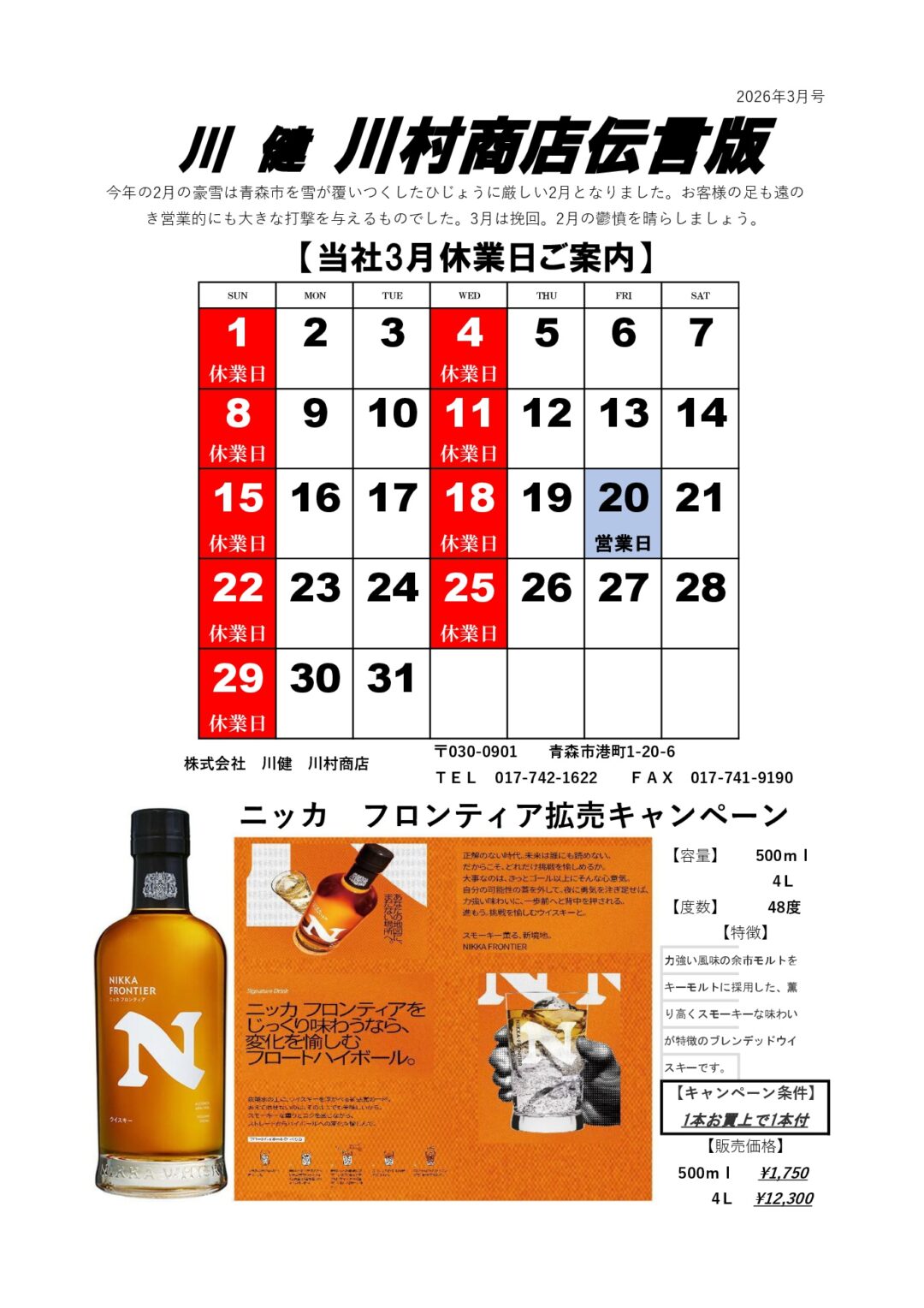 川村商店2026年3月伝言板
